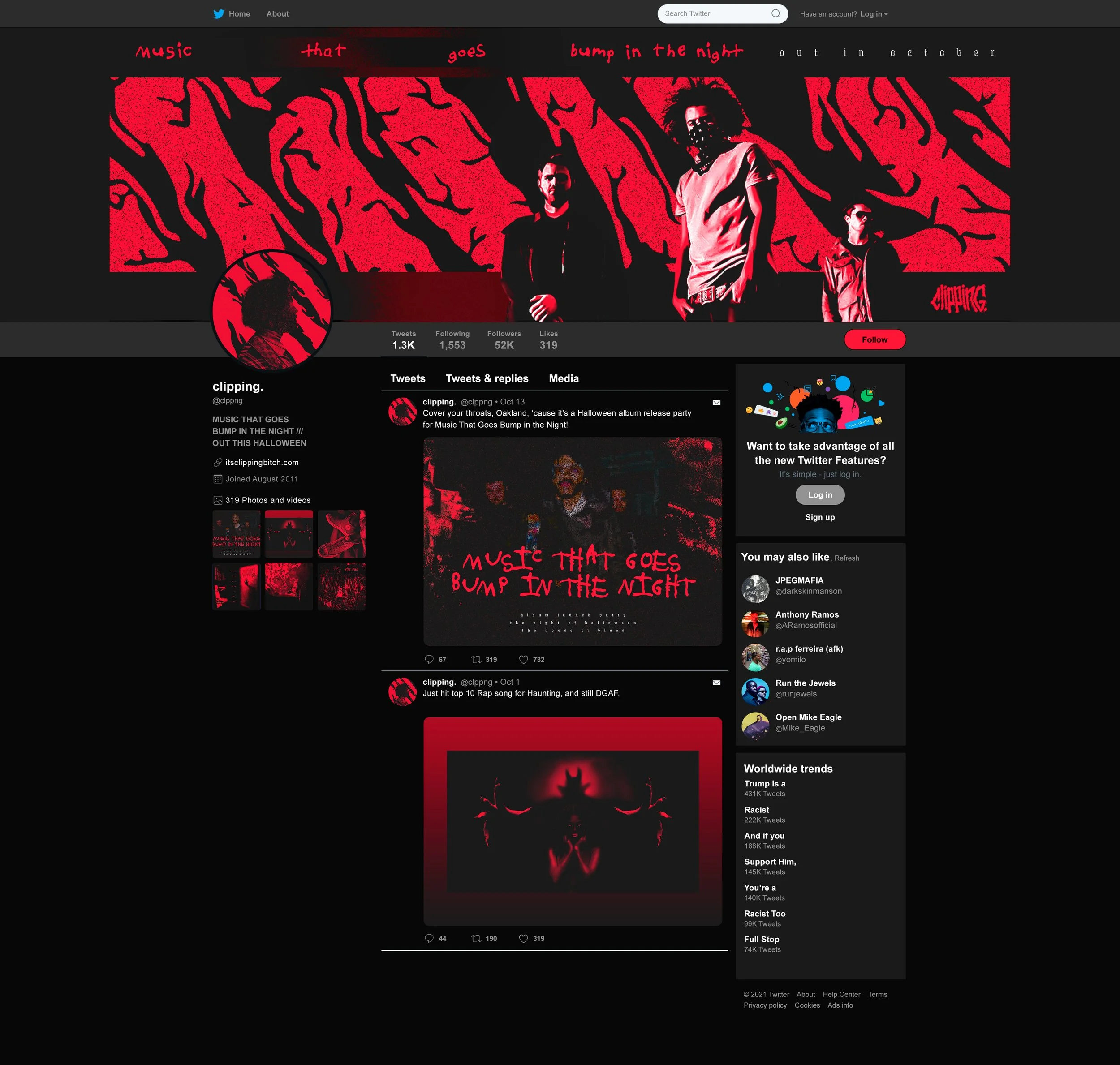 This is a re-brand project for the rap music trio, clipping.